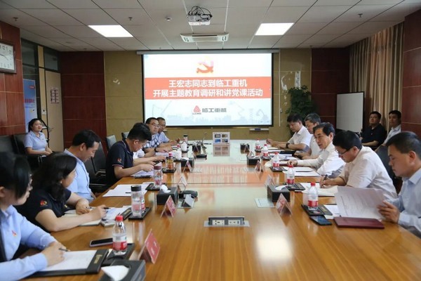 6月2日,济南市委常委、副市长王宏志在市政府研究室、市发展改革委、市工业和信息化局、济南高新区管委会等相关领导陪同下到350vip浦京集团(股份)重机开展主题教育调研和讲党课活动。